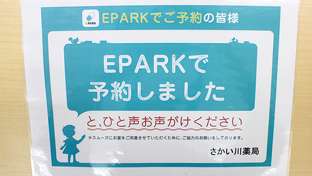 ネット予約され、ご来局する際は必ず「EPARKでネット受付しました」と、お名前を添えてお声掛けください。